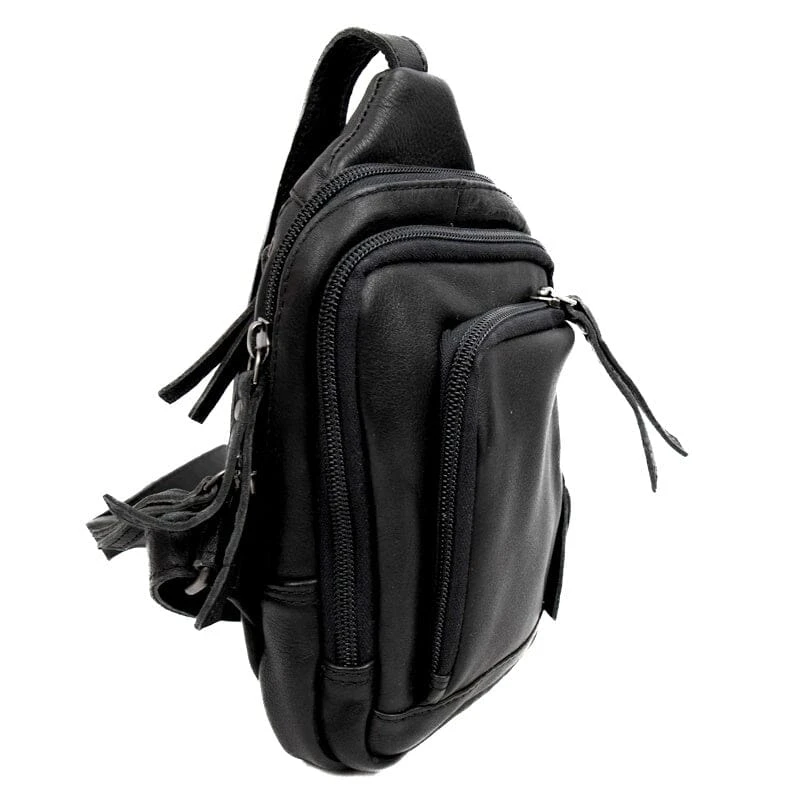 De Katinka is een slingbag rugzak van Bear Design. Deze tas is gemaakt van mooi echt leer. Deze prachtige leren tas komt uit de Calisto Pelle collecie van Bear Design. Het leer heeft een unieke waxbehandeling gehad, hierdoor voelt het leer heel soepel aan. De tas heeft een lange schouderband die verstelbaar is, doordat de schouderband verstelbaar is kan je de tas altijd op de gewenste lengte dragen. De tas heeft een ruim hoofdvak, twee voorvakken en een achtervak met ritssluiting. Intern vindt u een steekvak en 4 creditcardvakjes.