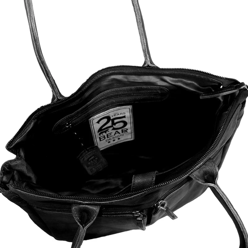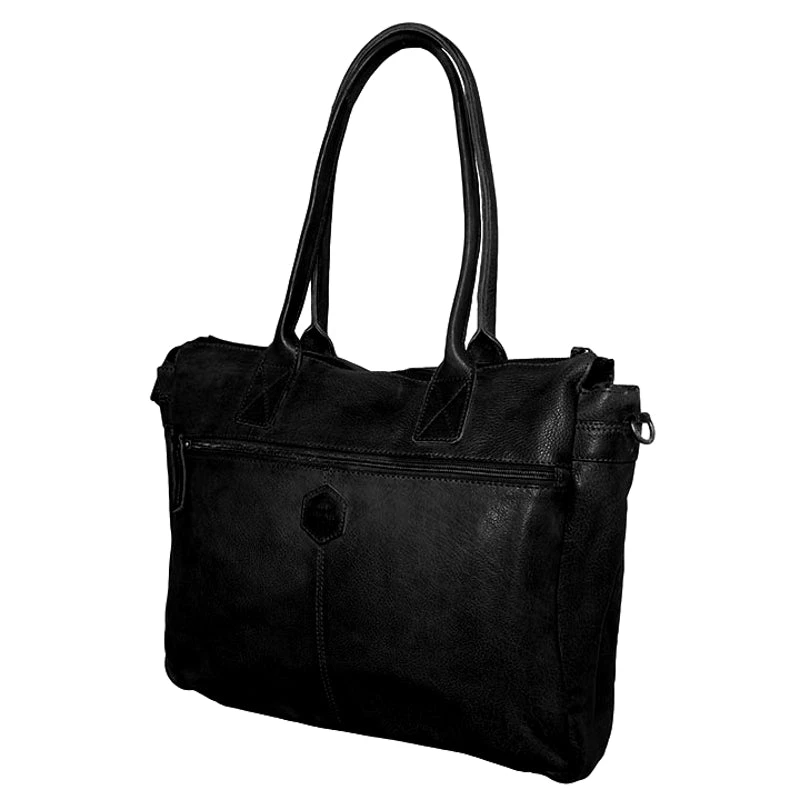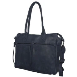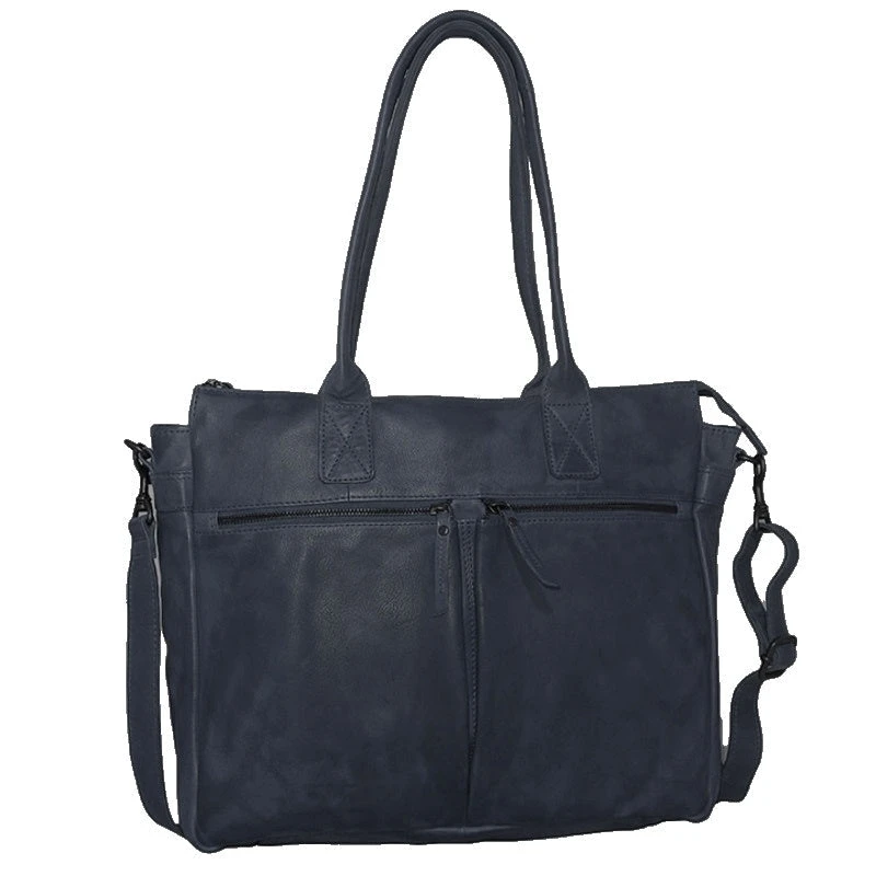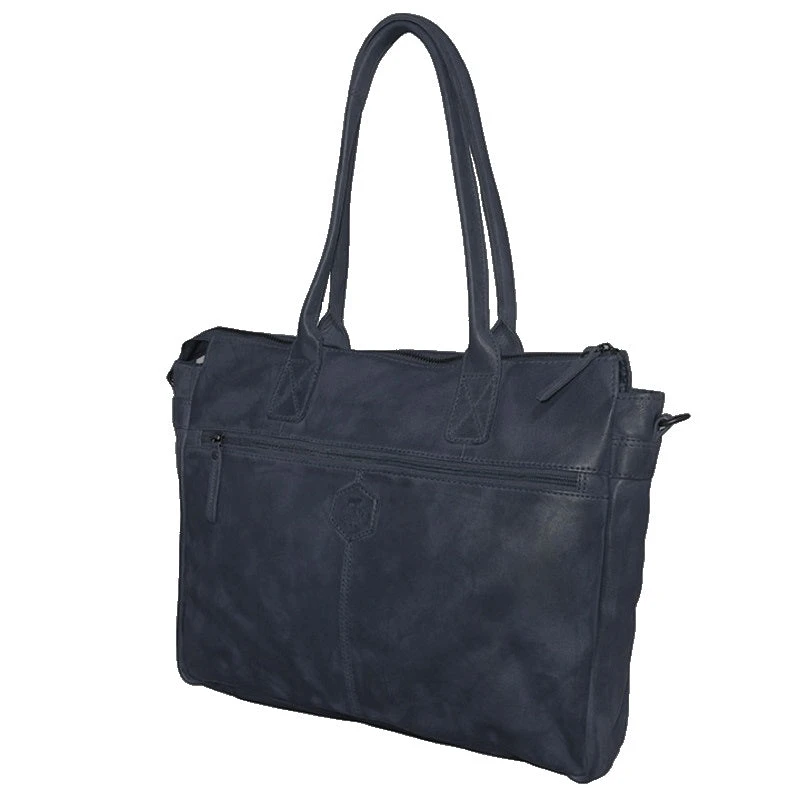 De achterzijde van de tas heeft een ritsvak, de voorzijde heeft twee ritsvakken. Deze dames businesstas is voorzien van twee leren grepen (28 cm) om de tas over de schouder of aan de hand te dragen en heeft een afneembare lange leren schouderband om de tas over de schouder of crossbody te dragen.