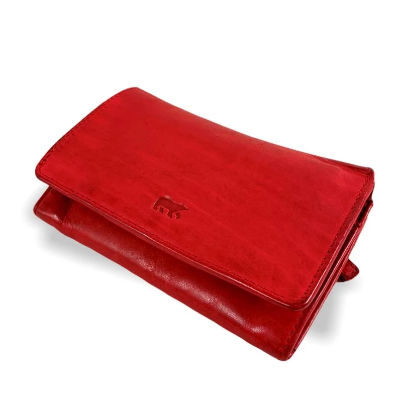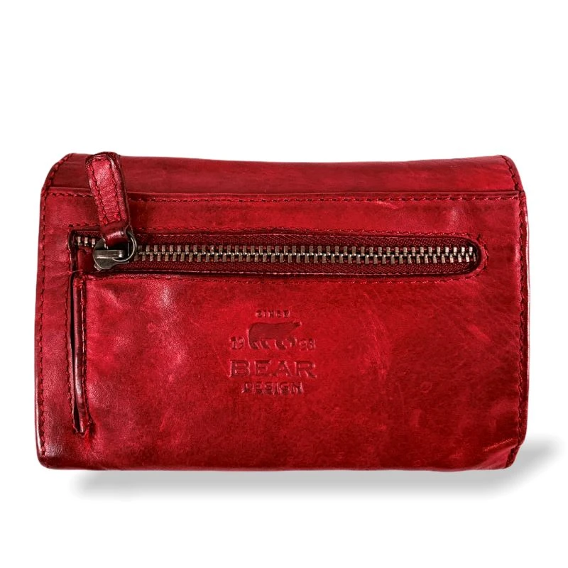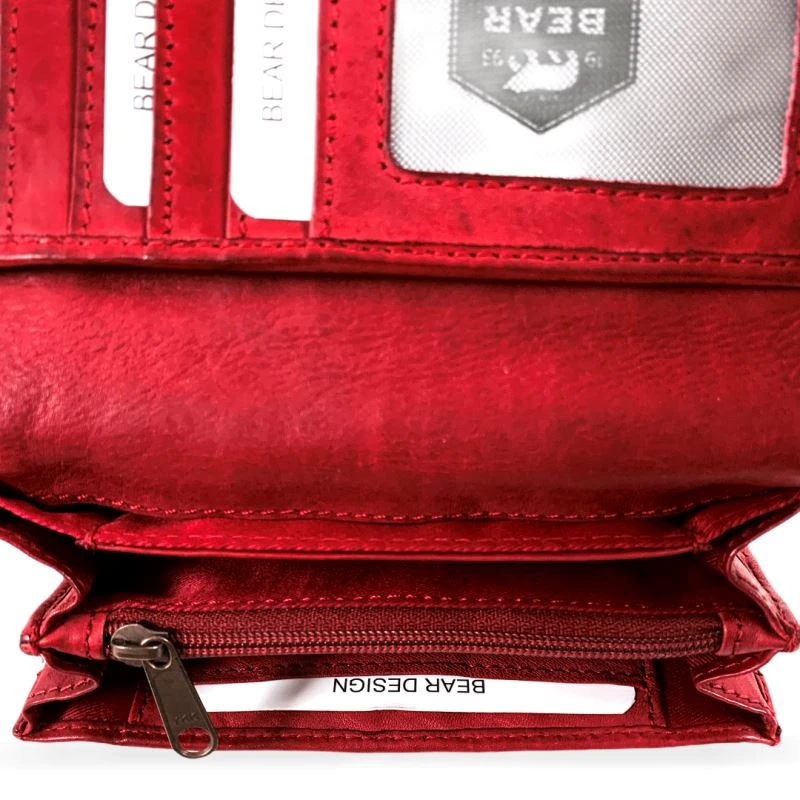 Een compacte en handige portemonnee met veel vakjes gemaakt van soepel gelooid leer met een vintage look. Opvallend zijn de drie vakken met een transparante voorzijde waarachter foto’s geplaatst kunnen worden.