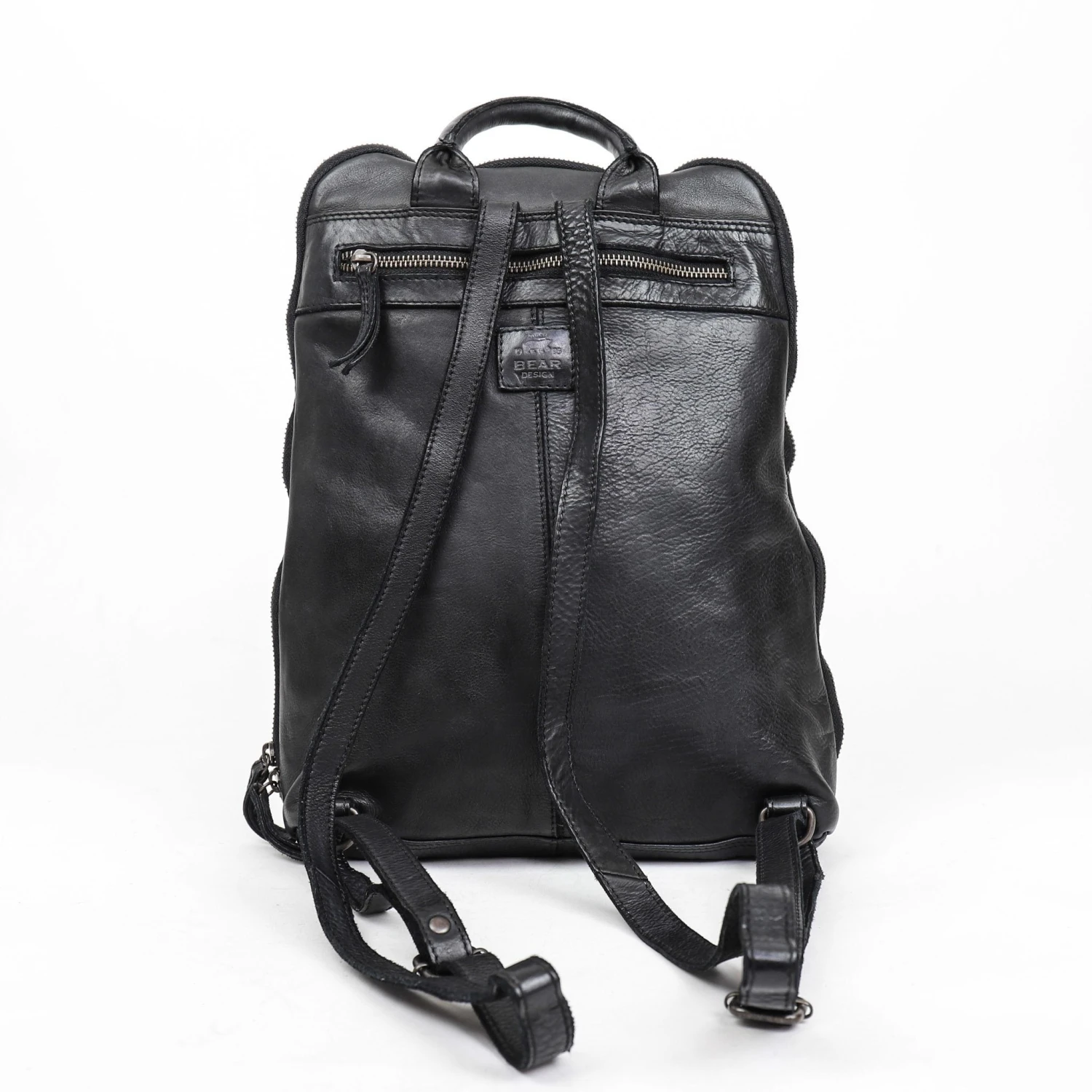 De Ivanka van Bear Design uit de Cow Lavato serie is een handige ruime rugzak. De rugtas is gemaakt van soepel gelooid rundleer en heeft op het voorpand een ritsvak en evenals aan de achterzijde. Aan de binnenzijde wordt de tas verdeel in 2 vakken door een tussenschot met een ritsvak. Ook bevindt zich aan de binnenzijde een telefoonvak, een insteekvak en een ritsvak. De rugbanden kunnen in lengte versteld worden.