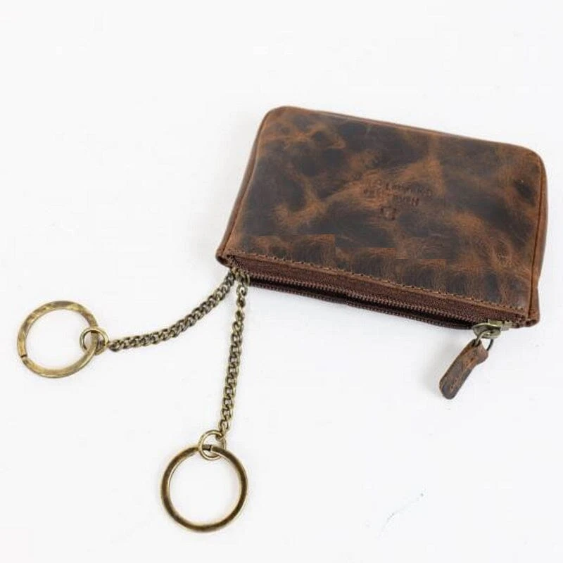 Dit sleuteletui heeft 2 ritsvakken, een voor en een bovenop. Het ritsvak bovenop heeft een met leer bevestigde dubbele sleutelring.Hier kunt u uw sleutelbos gemakkelijk en veilig in opbergen.  Â