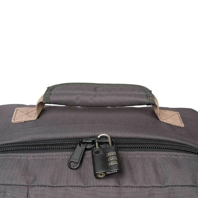 De Cabin Zero is gemaakt van stevig, waterafstotend polyester en kan  zeker tegen een stootje. Het hoofdvak van de tas heeft dubbele “kissing zippers” en is daardoor heel gemakkelijk af te sluiten met een slotje. Het slotje zit niet inbegrepen bij de Cabin Zero maar kan wel los besteld worden.