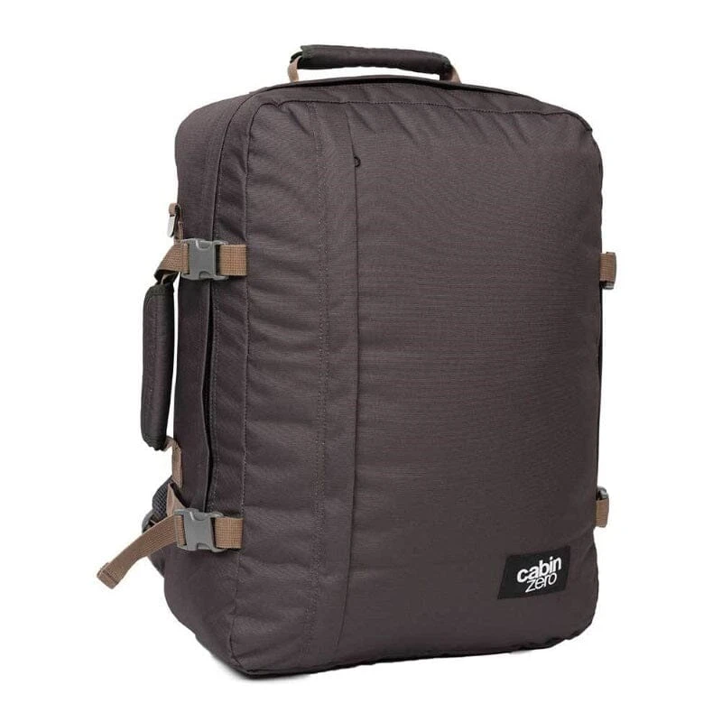 De Cabin Zero Ultralight Cabin bag Classic is een handbagage trolley, maar dan zonder de wielen en de trekslang. De tas is licht van gewicht (nog geen 800 gram) en is handig te dragen dankzij de verstelbare, gevoerde schouderbanden en de extra boven- en zij handgrepen.