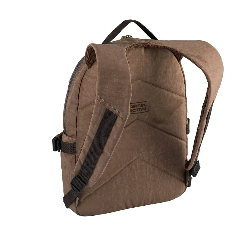 Deze Camel Active rugtas komt uit de Journey collectie en is gemaakt van sterk, lichtgewicht washed nylon. De rugzak is voorzien van twee gewatteerde schouderbanden, heeft een groot hoofdvak afsluitbaar met een rits. Aan de voorzijde zitten twee voorvakken afsluitbaar met een ritssluiting en aan de achterzijde bevindt zich nog een ritsvak.