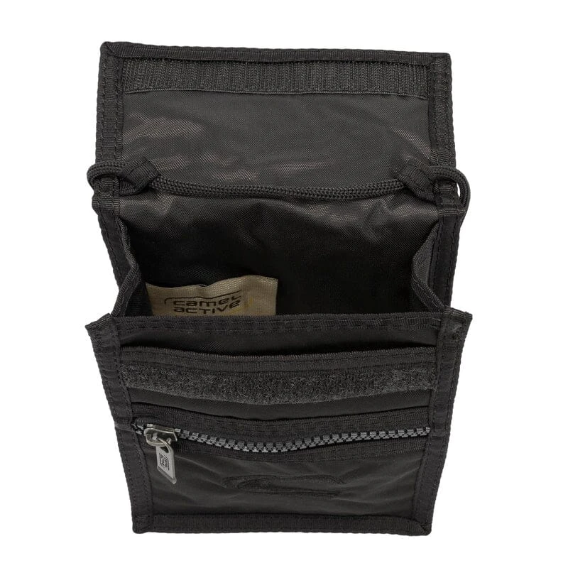 Dit handige tasje is gemaakt van sterk crincle nylon en heeft een koord waarmee het om de nek kan worden gehangen. Daarnaast heeft het ook een meschvak aan de achterzijde en een ritsvak aan de voorzijde. Het tasje kan worden afgesloten met een klep met velcron-sluiting.