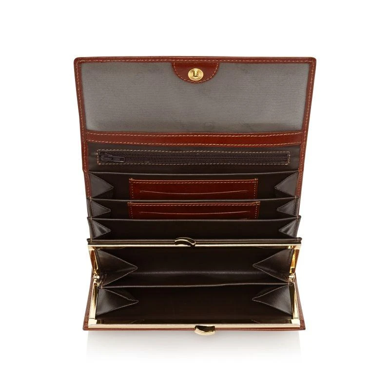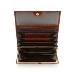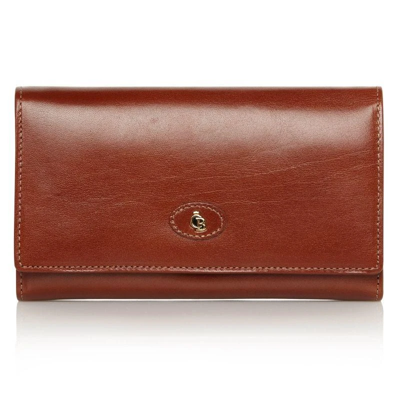 Zeer handzame portemonnee met overslag, beugelsluiting en veel opbergvakken. Bevat 6 creditcardvakjes. Dit artikel is uitgerust met een high-tech folie, dat het uitlezen van de persoonlijke gegevens via de RFID-chip op uw pasjes volledig blokkeert. Deze damesbeugelportemonnee komt uit de Gaucho-serie van Castelijn & Beerens en is gemaakt van stierenleer behandeld met een transparante verfstof. Afgewerkt met het sierlijke C&B-logo in een leren ovaaltje.