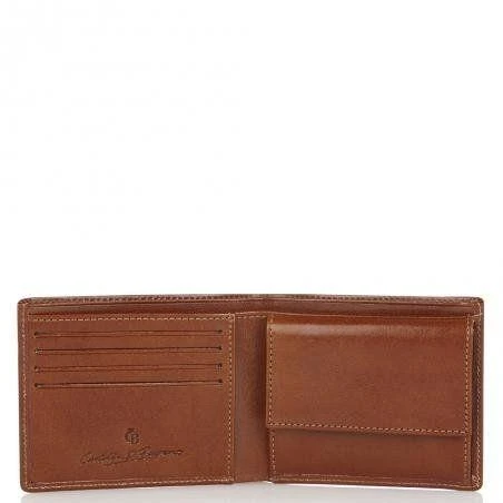 Stijlvolle billfold in handzaam formaat met vakken voor papiergeld en vakje voor kleingeld. Deze uitvoering kent 9 creditcardvakjes, deels uitklapbaar. Dit artikel is uitgerust met een high-tech folie, dat het uitlezen van de persoonlijke gegevens via de RFID-chip op uw pasjes volledig blokkeert. Uit de Gaucho-serie van Castelijn & Beerens, gemaakt van stierenleer behandeld met een transparante verfstof. Afgewerkt met het sierlijke C&B-logo in een leren ovaaltje.