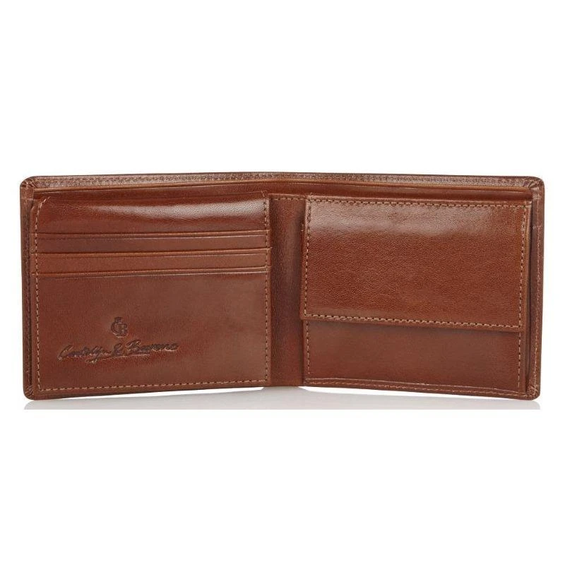 Stijlvolle billfold in handzaam formaat met vakken voor papiergeld en vakje voor kleingeld. Deze uitvoering kent 9 creditcardvakjes, deels uitklapbaar. Dit artikel is uitgerust met een high-tech folie, dat het uitlezen van de persoonlijke gegevens via de RFID-chip op uw pasjes volledig blokkeert. Uit de Gaucho-serie van Castelijn & Beerens, gemaakt van stierenleer behandeld met een transparante verfstof. Afgewerkt met het sierlijke C&B-logo in een leren ovaaltje.