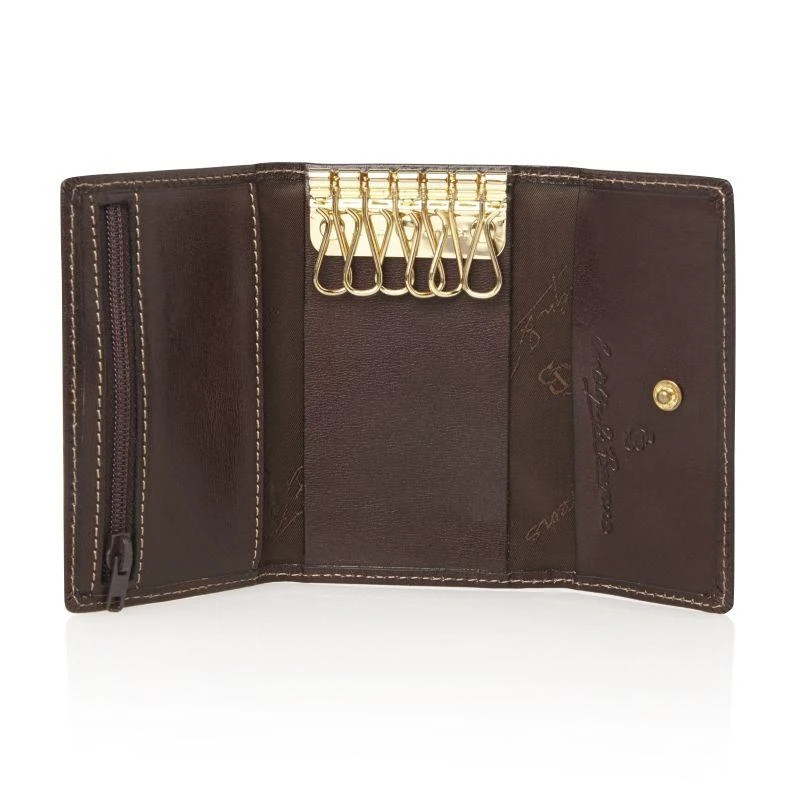 Zeer compacte sleuteletui met 6 kleine haakjes om sleutels overzichtelijk in weg te bergen. Bezit bovendien over klein maar handig extra ritsvakje. Dit artikel is uitgerust met een high-tech folie, dat het uitlezen van de persoonlijke gegevens via de RFID-chip op uw pasjes volledig blokkeert. Uit de Gaucho-serie van Castelijn & Beerens, gemaakt van stierenleer behandeld met een transparante verfstof. Afgewerkt met het sierlijke C&B-logo in een leren ovaaltje.