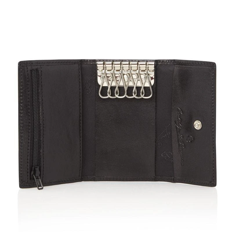 Zeer compacte sleuteletui met 6 kleine haakjes om sleutels overzichtelijk in weg te bergen. Bezit bovendien over klein maar handig extra ritsvakje. Dit  artikel is uitgerust met een high-tech folie, dat het uitlezen van de persoonlijke gegevens via de RFID-chip op uw pasjes volledig blokkeert. Uit de Gaucho-serie van Castelijn & Beerens, gemaakt van stierenleer behandeld met een transparante verfstof. Afgewerkt met het sierlijke C&B-logo in een leren ovaaltje.Â