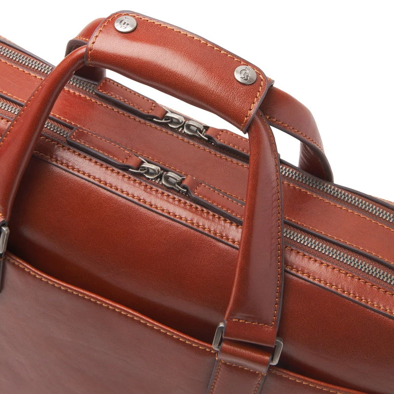 Deze laptoptas is gemaakt van schitterend plantaardig gelooid stierenleer. De zichtbare nekstrepen benadrukken de natuurlijke nerftekeningen in het leer. De behandeling met een transparante aniline verf finish maken de items helemaal af. Het Italiaanse leer is duurzaam gelooid volgens richtlijnen van de Leather Working Group.