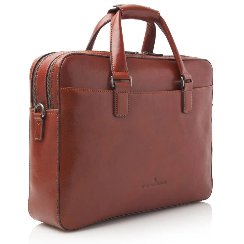Laptoptas Paul uit de Gaucho collectie van Castelijn & Beerens is een stijlvolle blikvanger. Deze luxe lederen laptoptas is voorzien van een schokabsorberend 15,6 inch laptopvak en tabletvak, een compact vak voor A4 documenten, papierwerk en laptop-accessoires. In het speciale RFID ritsvak worden uw bank-, creditkaarten en paspoort beschermd tegen skimmen. De leren laptoptas is voorzien van een lederen, afneembare, schouderband en handige trolleyband. Zowel in de hand, over uw schouder of over het treksysteem van uw trolley mee te nemen. Laptoptas Paul is verkrijgbaar in de kleuren cognac en zwart.