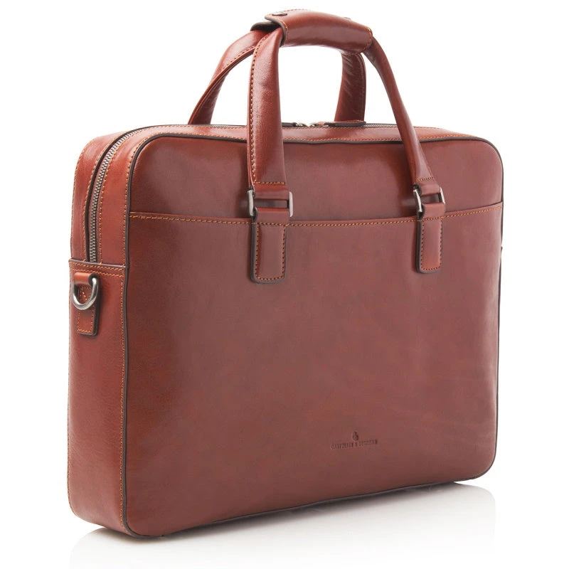 Deze laptoptas is gemaakt van schitterend plantaardig gelooid stierenleer. De zichtbare nekstrepen benadrukken de natuurlijke nerftekeningen in het leer. De behandeling met een transparante aniline verf finish maken de items helemaal af. Het Italiaanse leer is duurzaam gelooid volgens richtlijnen van de Leather Working Group. Laptoptas Ted is verkrijgbaar in cognac en zwart.