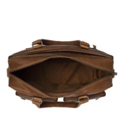 Deze ruime laptoptas voor heren is voorzien van twee hoofdcompartimenten. Het achterste vak is verstevigd en bedoelt om een laptop in op te bergen. De verstevigde zijkanten verminderen de kant op val- en stootschade. Het voorste vak is voorzien van een organizer, smaprtphonevak en extra vak met ritsluiting. Zowel aan de voor- als achterkant zitten extra vakken die je kunt afsluiten met rits. Deze laptoptas wordt geleverd met afneembare – en verstelbare schouderband.