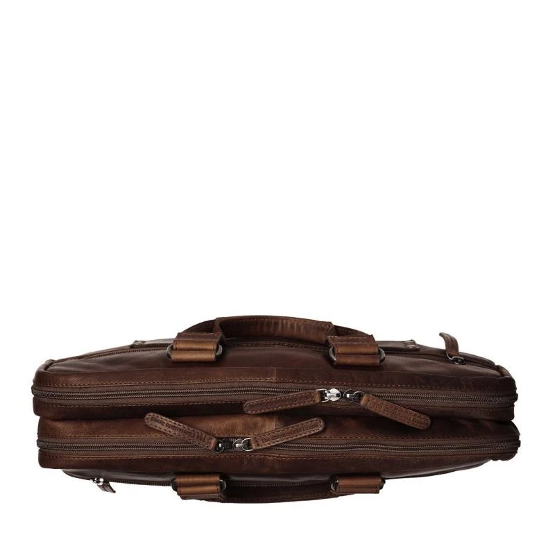 Deze cognac leren laptoptas Seth is opgebouwd uit 2 delen. Elk deel is af te sluiten door een stevige rits. Ook bevat deze tas een ritsvak aan de achter- en voorzijde. Daarnaast bevat deze leren laptoptas een handig laptop vak voor laptops tot en met 15 inch. De laptoptas wordt geleverd met een handige afneembare schouderband. Zo kun je de tas in de hand maar ook over je schouder meenemen. Kortom de ideale Chesterfield laptoptas voor dagelijks gebruik!