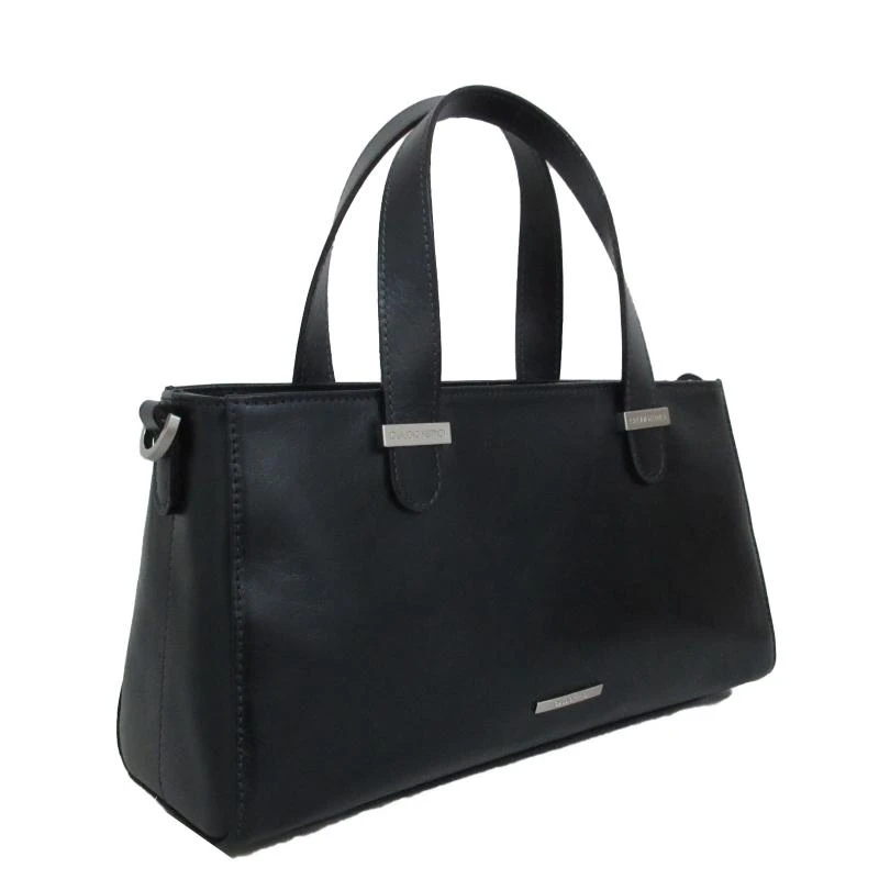 Deze elegante handtas uit de Classico collectie van Claudio Ferrici bestaat uit twee compartimenten die gescheiden zijn door een breed ritsvak en afsluitbaar zijn met een metalen ritssluiting. Aan de achterzijde bevindt zich een ritsvak. Aan de binnenzijde bevindt zich een rits- een telefoonvak en twee pennenlussen. Deze tas uit de Classico collectie kan aan de hand worden gedragen met behulp van de dubbele bovenhandvatten of over de schouder of crossbody middels de (afneembare) meegeleverde leren schouderband.