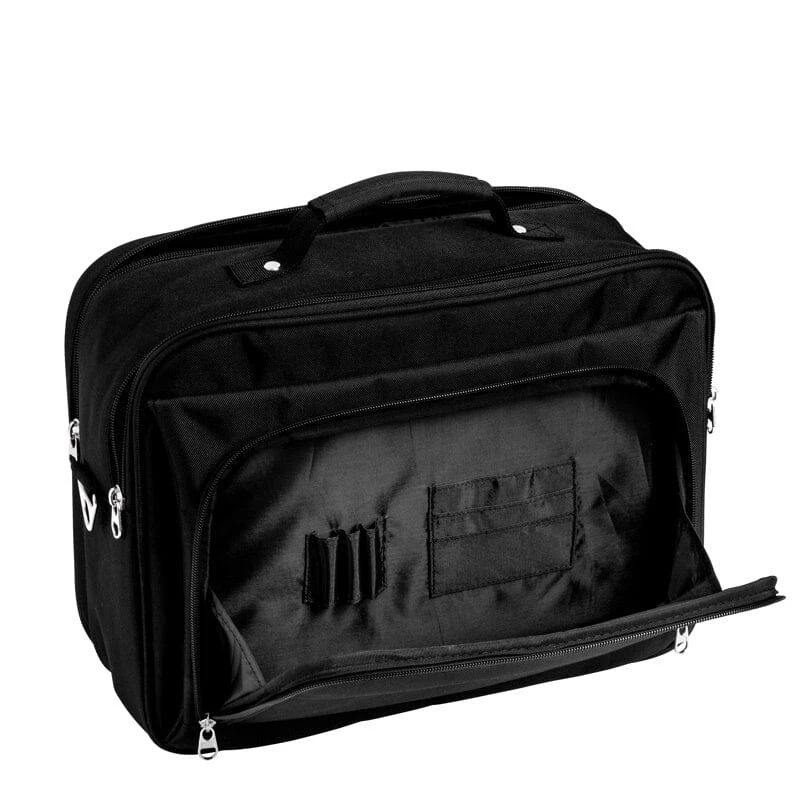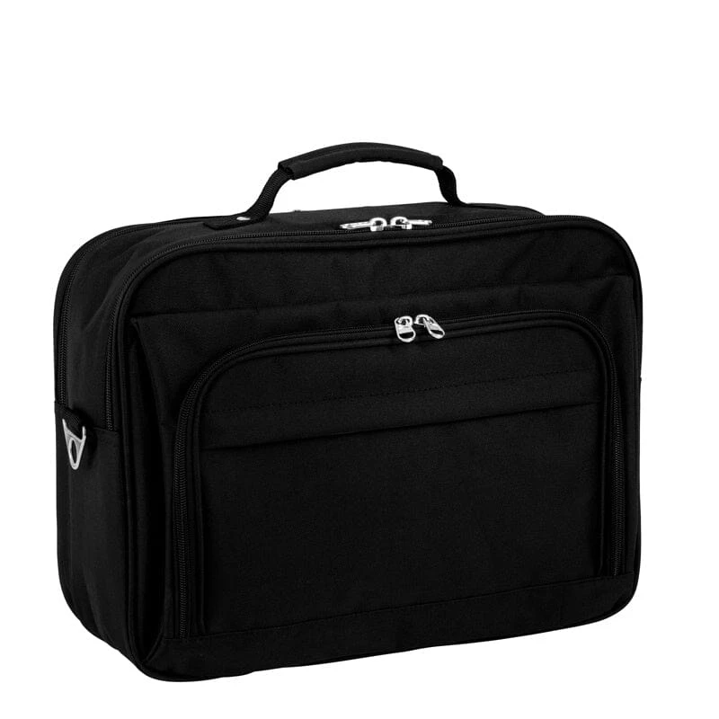 Deze handige reportertas is gemaakt van polyester, waardoor deze ultra licht is. De tas is te bevestigen bovenop een koffer, aan de achterkant van de tas zit nl. een smart sleeve die u over de trekstang van uw koffer kunt schuiven. De handbagage reportertas heeft maar liefst 4 vakken die met een rits zijn af te sluiten. Aan de voorkant zitten twee ritsvakken. In het midden zit het hoofdvak met een extra grote u-vormige opening en aan de achterkant zit het laatste opbergvak met een gewatteerd vak waar een 14″ laptop in past. De reportertas wordt geleverd met een schouderband, maar kan ook worden gedragen aan het handvat.
