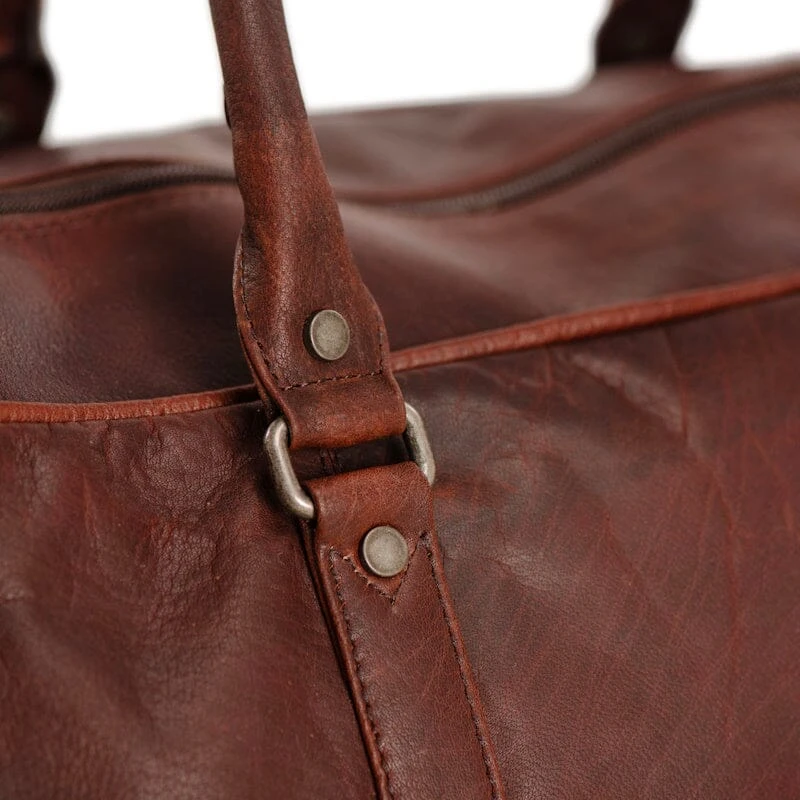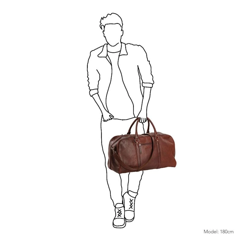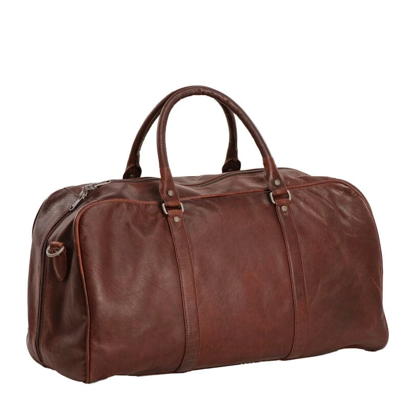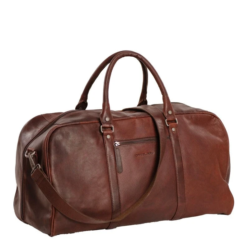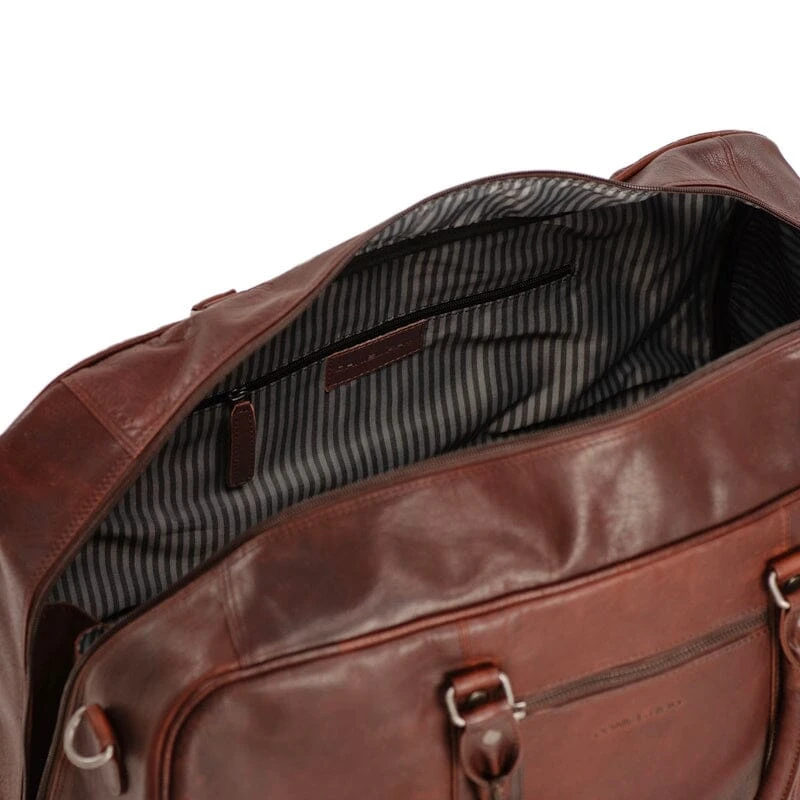 Stijlvol op reis of weekendje weg? Stijl & klasse komen samen in deze luxe leren weekendtas. Handig op te bergen of te stapelen in bijvoorbeeld de kofferbak. Een ruime tas met een U-vormige rits waardoor je makkelijk het hele vak open kunt leggen en je eenvoudig kunt in-en uitpakken. In het ruime hoofdvak bevinden zich twee steekvakken. Naast een extra ritsvak aan de voorzijde, is er ook een ritsvak aan de binnenzijde, handig voor het opbergen van je portemonnee of sleutels. Veder bevinden zich aan de binnenzijde een telefoonvak en een steekvak.Deze weekender/reistas heeft stevige leren handgrepen waardoor de tas aan de hand maar ook over de schouder gedragen kan worden. De afneembare en verstelbare schouderband zorgt ervoor dat de tas op gewenste lengte gedragen kan worden, ook crossbody. De binnenvoering heeft een luxe uitstraling door het mooie patroon.Â