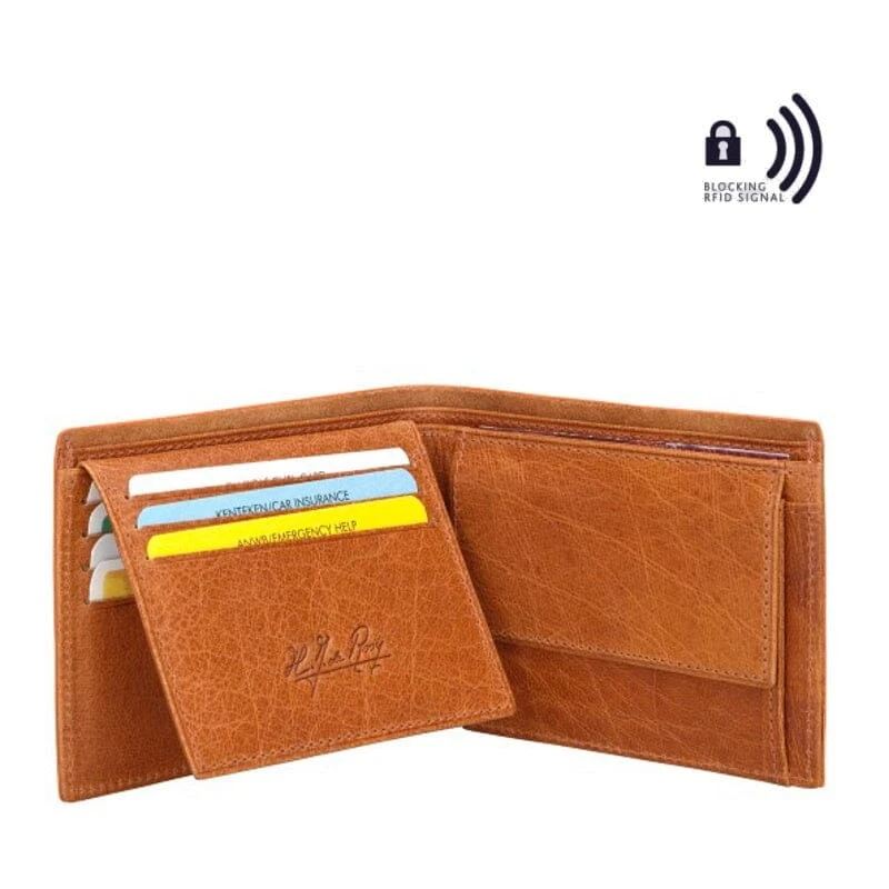 Deze portemonnee is uitgerust met een high-tech folie, dat het uitlezen van de persoonlijke gegevens via de RFID-chip op uw pasjes volledig blokkeert.