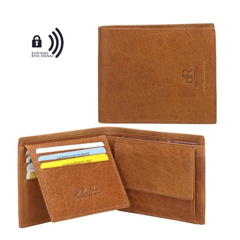Billfold uit de Icon serie van dR Amsterdam, voorheen bekend onder de naam H.J. de Rooy Lederwaren. Deze leren portefeuille is vervaardigd uit Top Grain Cow Leather en heeft ruimte voor 7 creditcards, 2 steekvakken voor briefgeld, een transparant fotovak, 2 extra steekvakken en een muntvak met drukknoopsluiting aan de binnenkant.