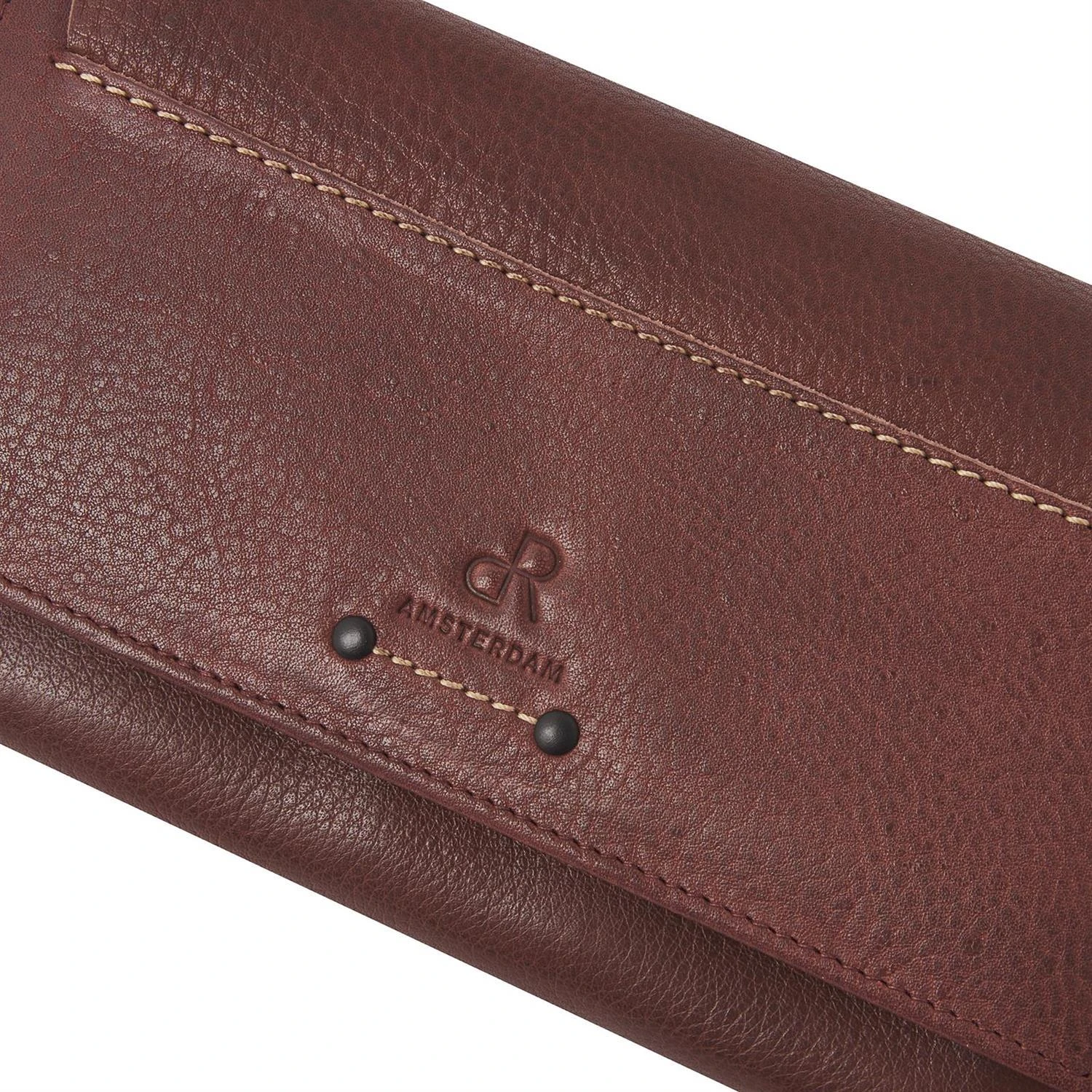 Deze mooie damesportemonnee is gemaakt van zacht rundleder en erg ruim aan de binnenzijde. De portemonnee wordt afgesloten met een overslag met druksluiting en heeft vier steekvakken voor briefgeld. Daarnaast zijn er nog drie kleinere steekvakken voor eventueel bonnetjes en twee ritsvakken voor belangrijke bezittingen. Er zijn twaalf creditcardvakken welke beschikken over een RFID bescherming. De achterzijde van de portemonnee bevat nog een ritsvak voor muntgeld en een steekvak voor bijvoorbeeld boodschappenlijstjes.