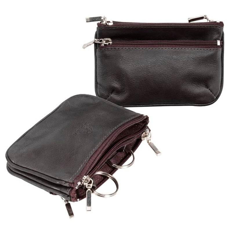 Dit sleutelmapje van H.J. de Rooy heeft 3 vakken die met een rits worden afgesloten. In het vakje op de voorkant van het mapje zit een ring om sleutels aan te bevestigen. In het middelste vak zitten 2 ringen voor sleutels, 1 aan de linkerkant en 1 aan de rechterkant in dit vak. In het achterste vak zit geen ring, in dit vak kan bijvoorbeeld geld opgeborgen worden.