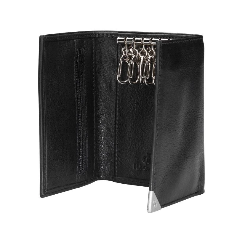 Sleutelmapje uit de Toronto Serie van dR Amsterdam. Dit sleuteletui is vervaardigd uit soepel nappa leer met een stijlvolle uitstraling. Het sleuteletui heeft zes haken om sleutels aan te bevestigen, een breed insteekvak voor briefgeld, een ritsvak aan de binnenzijde en twee insteekvakjes. Het etui sluit met een druksluiting.
