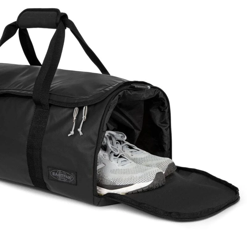 De Perce More Tarp is een geheel nieuwe en handige reistas cq sporttas uit de Tarp collectie van Eastpak. De twee korte handvatten en de afneembare en verstelbare schouderband maken de tas gemakkelijk om te dragen. Het ruime hoofdvak is voorzien van een u-vormige opening voor gemakkelijke toegang en word afgesloten met een ritssluiting. In het ruime zijvak kunnen schoenen opgeborgen worden.