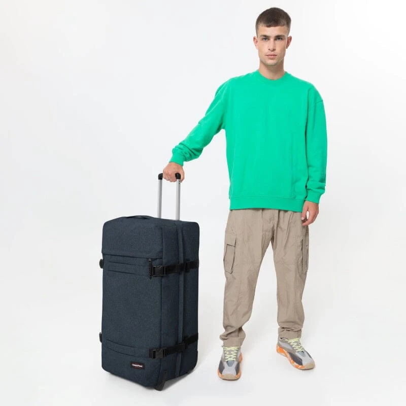 De Eastpak Transit’R M is vernieuwde versie van de Transverz en is een betrouwbare reisgenoot voor ieder type avonturier. Door de inhoud van 121 liter en de diverse opbergmogelijkheden is dit model ideaal voor een lange vakantie. De tas sluit met een ritssluiting en een geïntegreerd driecijferig TSA-slot. Deze wieltas heeft aan de bovenkant een handvat en dubbele draaghengsels aan de bovenzijde. Door de compressiebanden die zijn aangebracht kan het volume van de tas worden aangepast, handig voor als je een keer wat meer/minder meeneemt. De tas heeft een uitschuifbare trekstang en twee wielen, hierdoor rol je zo naar de incheckbalie!Â