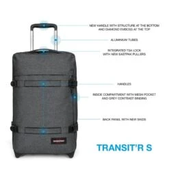 De Eastpak Transit’R S is vernieuwde versie van de Transverz en is een betrouwbare reisgenoot voor ieder type avonturier. Door het compacte formaat en de diverse opbergmogelijkheden is dit model ideaal als handbagage. De tas sluit met een ritssluiting en een geïntegreerd driecijferig TSA-slot. Deze wieltas heeft aan de bovenkant een handvat en dubbele draaghengsels aan de bovenzijde. Door de compressiebanden die zijn aangebracht kan het volume van de tas worden aangepast, handig voor als je een keer wat meer/minder meeneemt. De tas heeft een uitschuifbare trekstang en twee wielen, hierdoor rol je zo naar de incheckbalie! De Transit’R van Eastpak is functioneel, licht van gewicht, oersterk met 30 jaar garantie.