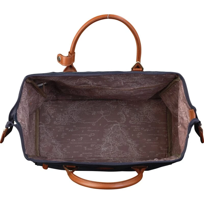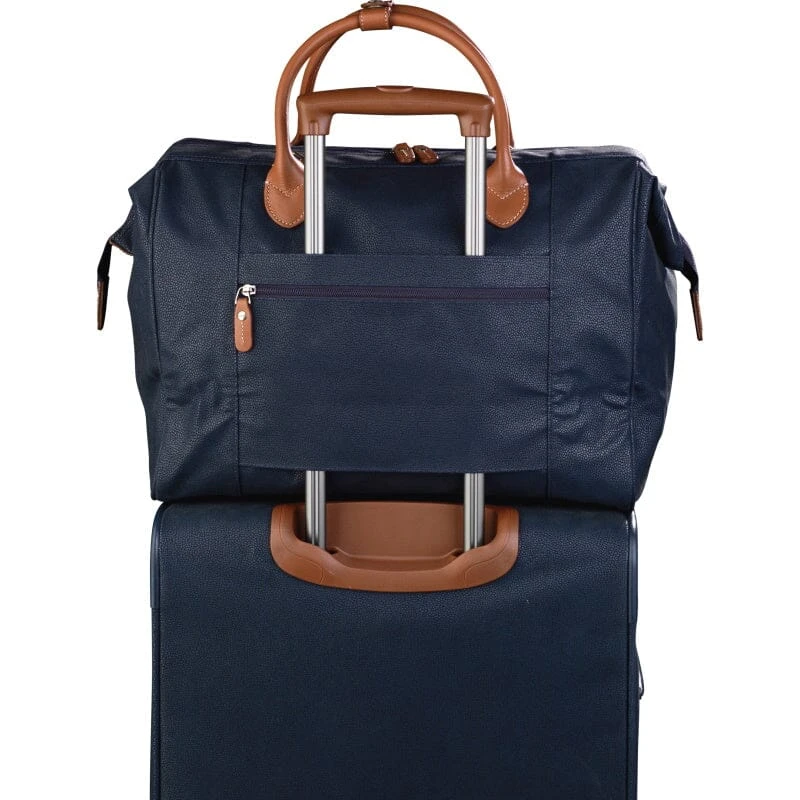 Door het gebruik van flockmateriaal afgewerkt met  leer heeft deze weekend/reistas een unieke uitstraling en is het materiaal tevens waterafstotend. De tas is voorzien van twee beugels waardoor bij het openen de tas heel toegankelijk is. Daardoor  is deze reistas erg geliefd onder de modebewuste en praktische reiziger die tijdens een vliegreis deze tas mee kan nemen als handbagage.