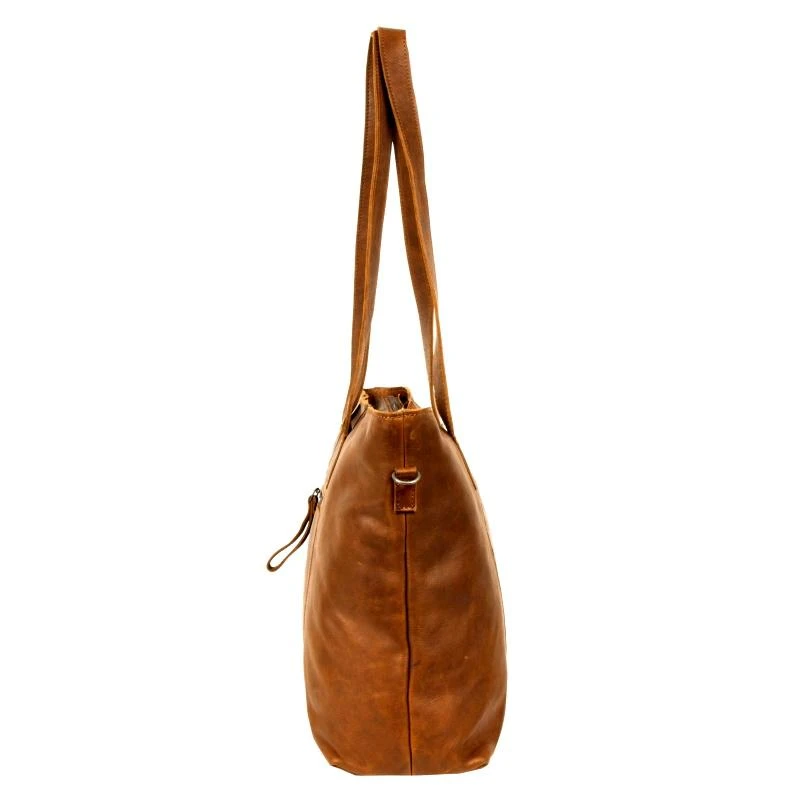 De Nynke Shopper L is een functionele tas voor dames van het merk Justified die uitstekend voor het werk, voor school of een dagje shoppen gebruikt kan worden. De tas is uitgevoerd in hoogwaardig,soepel gelooid kwaliteits leer en heeft aan de binnenzijde twee ruime compartimenten die gescheiden zijn door een divider, een ritsvak en een insteekvak. In de tas past een 15,6″ laptop maar heeft geen apart gewatteerd vak hiervoor. Het is aan te raden om de laptop extra te beschermen met een laptop sleeve. Middels de dubble leren schouderbanden kan de tas prima aan de hand, arm of kort op de schouder gedragen worden. Bij de tas wordt een afneembaar en verstelbaar schouderhengsel geleverd waardoor de tas ook crossbody of over een schouder te dragen is. Het hoofdvak van de tas sluit middels een ritssluiting en het interieur van de tas heeft genoeg ruimte om alles mee te kunnen nemen voor je dagelijkse benodigdheden.