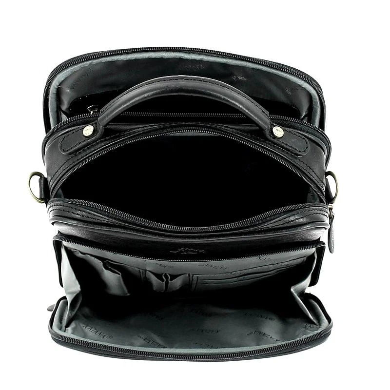 De 31027 herentas van het merk Katana is een compacte, mulfictionele lederen reportertas met vele vakken en is het grotere broertje van de 31026. De tas heeft een leren bovenhandvat om de tas aan de hand te dragen maar er wordt ook een leren schouderband meegeleverd om de tas op de schouder te dragen. De leren schouderriem is in lengte verstelbaar waardoor de reportertas ook crossbody gedragen kan worden. De hele tas heeft een binnenvoering van polyester met een lining van Katana.