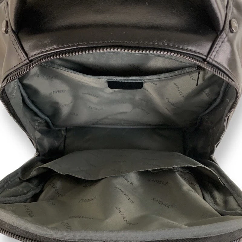 Luxe lederen laptop rugtas uit de Square collectie van het merk Katana. De tas is gemaakt van soepel en glad rundleer. De rugzak heeft een ruim hoofdvak, een laptoptvak voor een 15,6″ laptop en twee voorvakken. Al deze vakken zijn afsluitbaar met een ritssluiting. De binnenzijde beschikt over diverse opbergvakken en is geschikt voor het opbergen van A4 documenten. De rugzak heeft twee gevoerde leren schouderbanden en een gepolsterd achterpaneel voor optimaal draagcomfort. Tevens bevindt zich aan de achterzijde een Smart Sleeve om de rugtas te kunnen bevestigen op het trolleysysteem van een rolkoffer. Aan de bovenkant bevindt zich een stevig leren handvat.