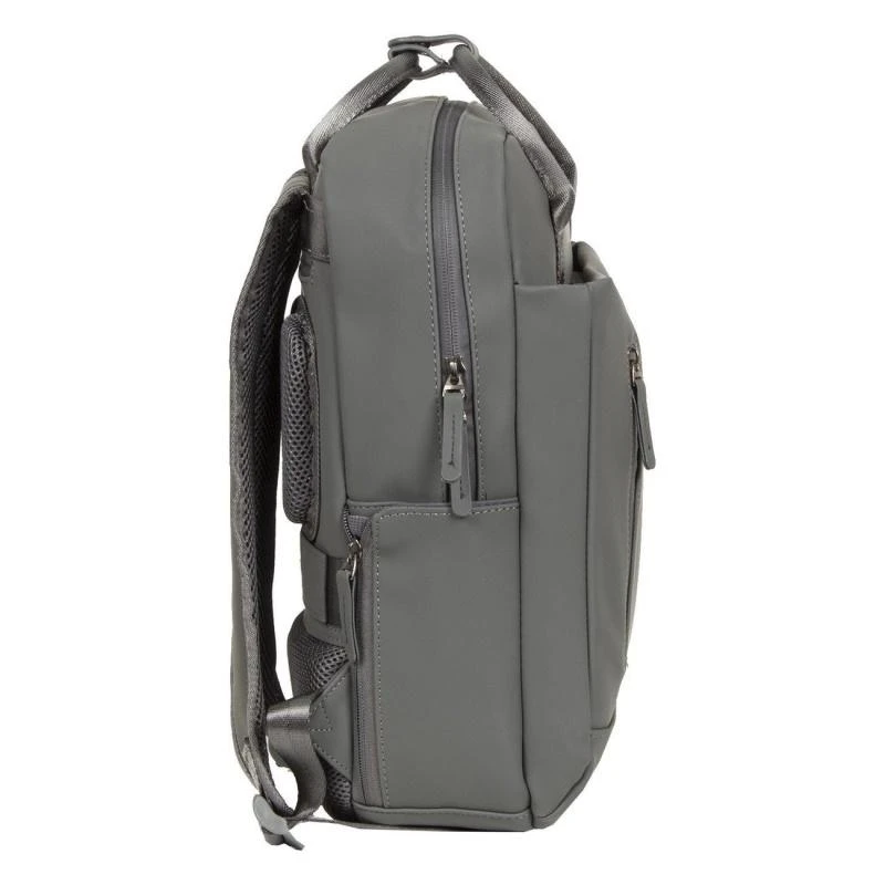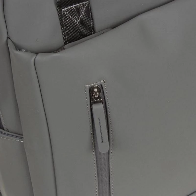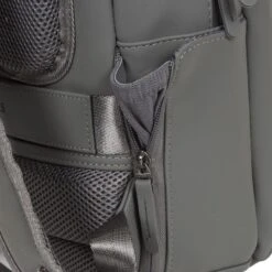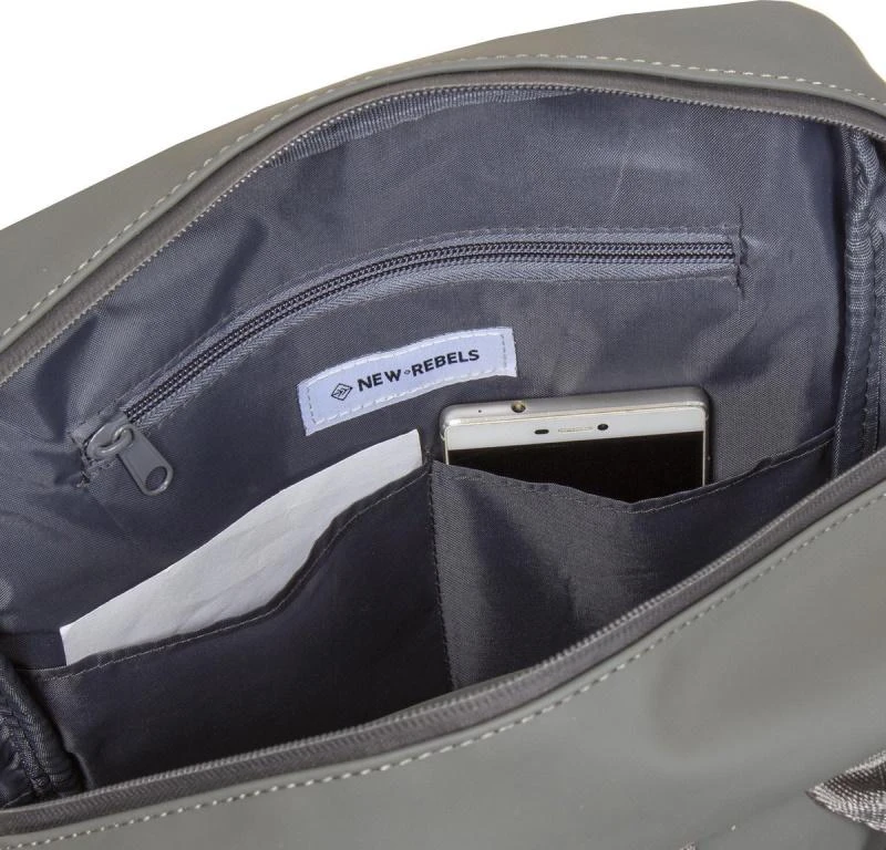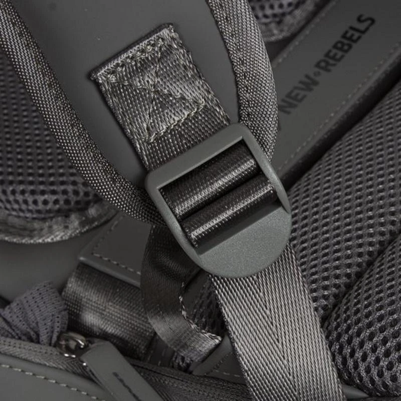 Stoere waterproof rugzak uit de Harper serie van New Rebels. De tas is gemaakt van waterproof PU materiaal wat de tas waterbestendig maakt. De rugzak beschikt over een ruim hoofdvak die afsluitbaar is met een waterkerende ritssluiting. In het hoofdvak met ritssluiting zit een ritsvak, een telefoonvak, een insteekvak en een laptopvak voor een 13,3″ laptop. Op de voorzijde van de tas zitten een horizontaal ritsvak en een verticaal ritsvak. In het horizontale ritsvak bevinden zich twee insteekvakken, twee pennenvakken en een ritsvak. Aan de zijkanten bevinden zich twee inteekvakken waar bijvoorbeeld een waterflesje en/of blikje in passen. De tas beschikt over 2 verstelbare rugbanden, hierdoor kan u de tas altijd op de gewenste lengte dragen. Het rugpaneel en de schouderbanden zijn gewatteerd, hierdoor draagt je de tas zeer comfortabel.Â