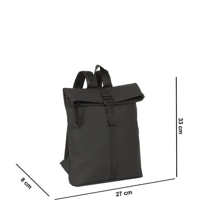 Stoere waterproof rugzak uit de Mart serie van New Rebels. De tas is gemaakt van waterproof PU materiaal wat de tas waterbestendig maakt. Het hoofdvak is eenvoudig te vergroten of verkleinen door het oprol gedeelte aan de bovenkant. Hierdoor kun je tot 10 cm meer ruimte creëren. Het hoofdvak is afsluitbaar met een stevige rits en een gespsluiting die als een zwarte strook doorloopt in het design. In het hoofdvak zit een ritsvak, een telefoonvak en een insteekvak. Op de achter- en de voorzijde van de tas bevindt zich ook nog een ritsvak. De tas beschikt over twee verstelbare rugbanden, hierdoor kan je de tas altijd op de gewenste lengte dragen.Â