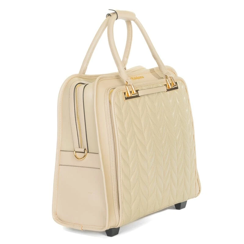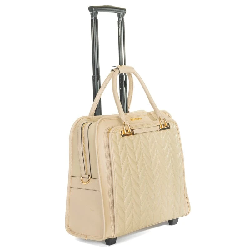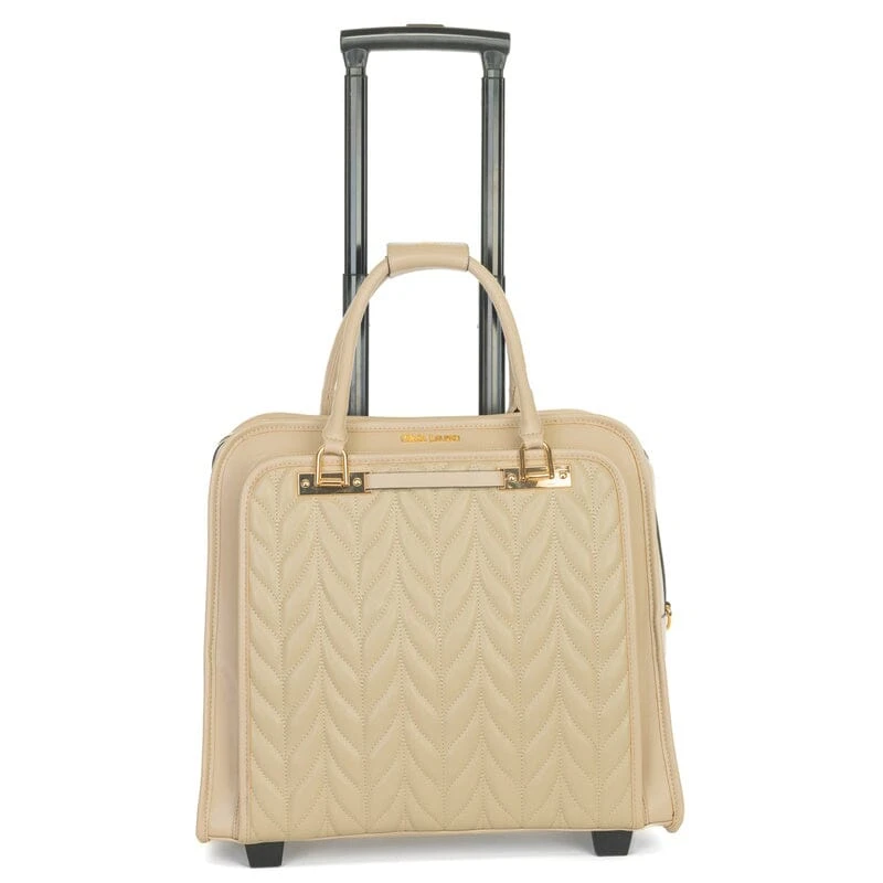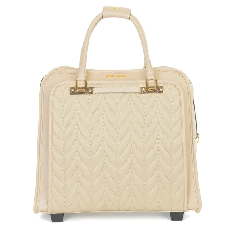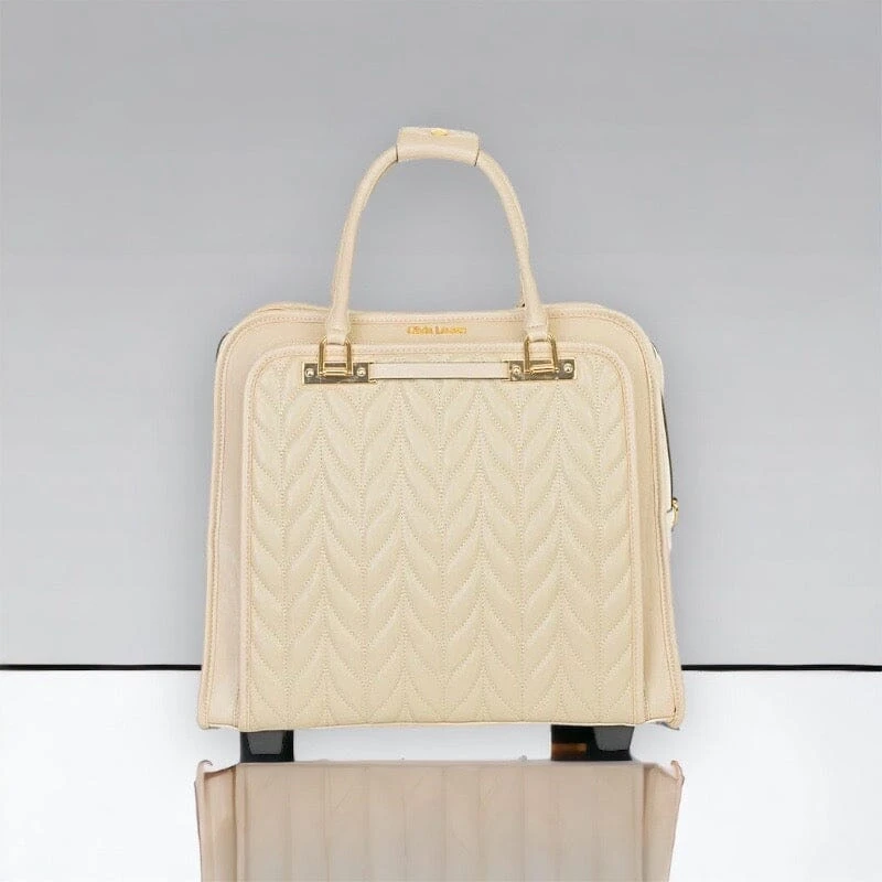 OLIVIA LAUREN concentreert zich op elegante tassen. Geen saaie vormloze stukken maar mode objecten waarmee u wilt pronken op zakenreis, citytrip of op weg naar kantoor. Deze praktische tas heeft ruimte voor uw 17″ laptop en andere A4 documenten. Het kan gemakkelijk als handbagage gebruikt worden op het vliegtuig. Kan in de hand, over de schouder gedragen worden of achter je aan worden getrokken met behulp van de twee wielen en het telescopische treksysteem.