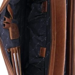 Deze business-/laptoptas is vervaardigd uit volnerf rundleder en heeft 2 hoofdvakken en een organizer voorvak met rits. In het ene hoofdvak is een gepolsterd afsluitbaar gedeelte voor een 15.6 inch laptop of 15″ MacBook aangebracht en in het andere hoofdvak zit een gepolsterd vak voor een tablet. De tas is voorzien van Plevier® multifunctional pockets: voor o.a. mobiele telefoon, usb stick, visitekaartjes, optische muis en bekabeling. Aan de achterkant is een mogelijkheid aangebracht om de tas op een trolley te schuiven. Een schouderband met een comfortabele schouderpad wordt meegeleverd.Â
