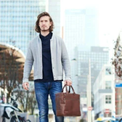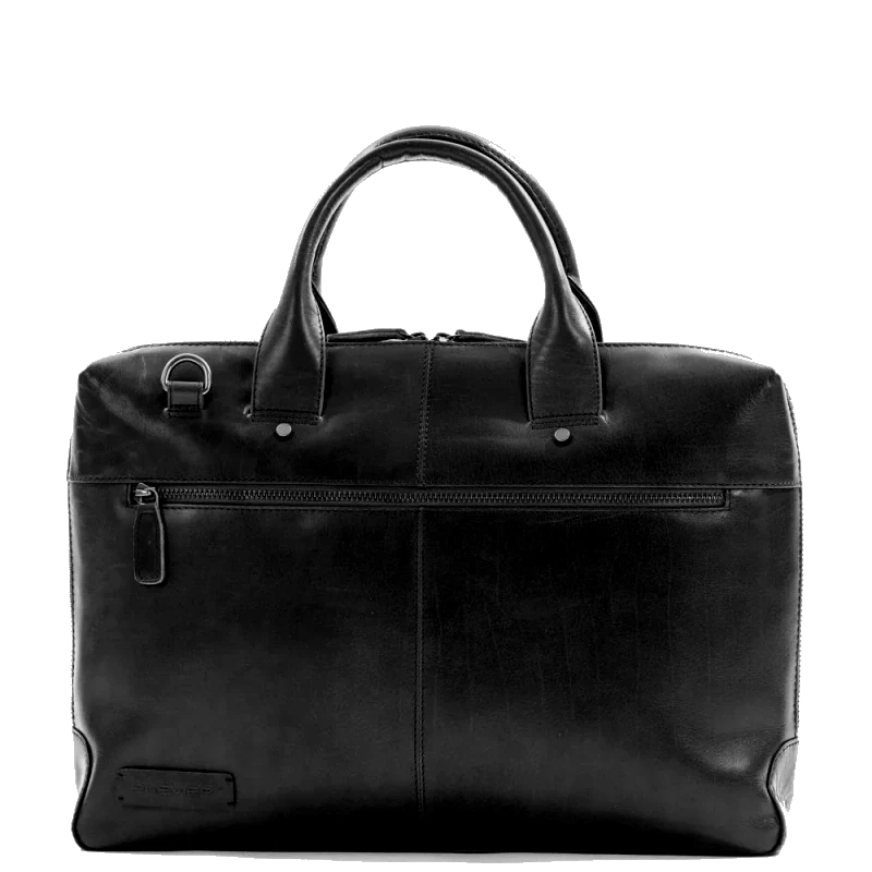 Deze laptoptas is gemaakt van volnerf plantaardig gelooid gewaxt rundleer en heeft 2 hoofdvakken. In een van de hoofdvakken zit een gepolsterd vak voor een 15.6 inch laptop en in het organizer voorvak zitten vele handige multifunctionele vakken voor mobiele telefoon, usb stick, pennen, visitekaartjes, optische muis, adapter en bekabeling. Aan de achterkant bevindt zich een ritsvak. Een schouderband met een comfortabele schouderpad wordt meegeleverd.