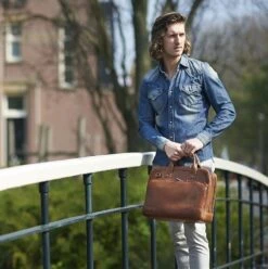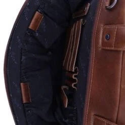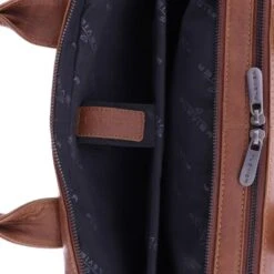 Deze laptoptas is gemaakt van volnerf plantaardig gelooid gewaxt rundleer en heeft 2 hoofdvakken. In een van de hoofdvakken zit een gepolsterd vak voor een 15.6 inch laptop en in het organizer voorvak zitten vele handige multifunctionele vakken voor mobiele telefoon, usb stick, pennen, visitekaartjes, optische muis, adapter en bekabeling. Aan de achterkant bevindt zich een ritsvak. Een schouderband met een comfortabele schouderpad wordt meegeleverd.