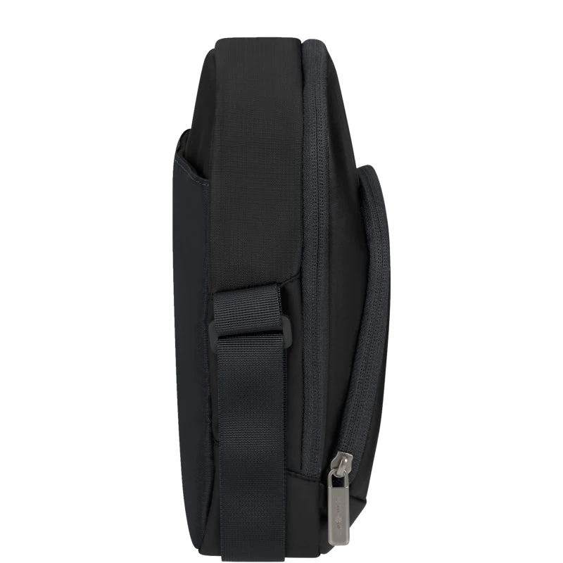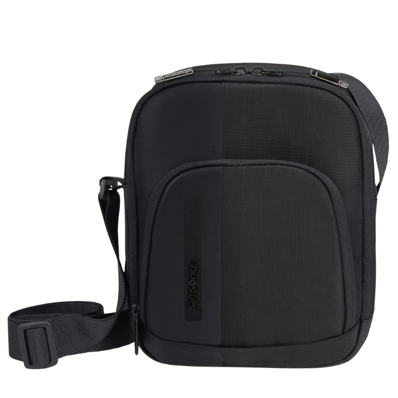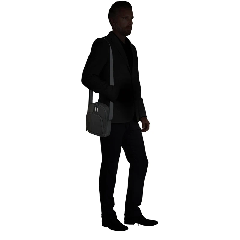 De Crossover uit de Biz2Go collectie van Samsonite is gemaakt van lichtgewicht en gerecycled polyester. Deze handige schoudertas, die geschikt is om een tablet van maximaal 9,7″ in mee te nemen, sluit met een bovenrits, heeft een ritsvak aan de voor- en achterzijde. In het hoofdvak zitten naast het tablet vak ook nog een ritsvak. Deze compacte herentas heeft een lange en verstelbare schouderband om de tas crossover of op een schouder te kunnen dragen.