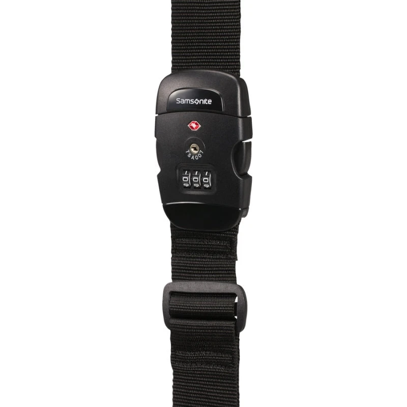 De Samsonite luggage strap TSA lock maakt je reisbagage extra veilig. Deze riem is verstelbaar en maakt de koffer extra herkenbaar. Dit slot is goedgekeurd door de Amerikaanse veiligheidsinstantie die je koffer of tas moet controleren. Deze sloten kunnen door de douane met een loper worden geopend en weer gesloten zonder schade toe te brengen aan je tas, koffer of slot. De sloten herken je aan het TSA-logo (waarbij in dit geval TSA staat voor Travel Sentry Approved). Er wordt dus geen sleutel bijgeleverd. De kofferriem is vervaardigd uit hoge kwaliteit nylon en de beugel van ABS. De breedte van deze kofferriem is 7,5 centimeter en de lengte is verstelbaar van 100 cm tot 182 cm.