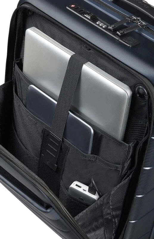 De Neopod Spinner 55 Exp van Samsonite is jouw nieuwe reispartner. Doordat de koffer voldoet aan de IATA norm, mag deze worden meegenomen als handbagage aan boord van het vliegtuig. Doordat de behuizing van polycarbonaat is gemaakt, is deze erg sterk. Polycarbonaat heeft het voordeel dat het flexibel is, hierdoor is de koffer goed in staat om klappen op te vangen zodat je met een gerust hart op reis gaat. Door de vier soepele wielen rol je de koffer gemakkelijk naast en achter je. Dankzij de pakriemen blijft je bagage ook tijdens de reis netjes op zijn plaats. Dankzij het slot met TSA functie kun je zorgeloos met de koffer naar de VS reizen. Daarnaast is de koffer ook nog eens makkelijk te vervoeren dankzij de boven- en zijhandgrepen, soepele wielen en telescopische trekstang. Doordat de koffer is uitgerust met een USB-poort, laad je je telefoon of tablet moeiteloos op terwijl je je powerbank in je koffer laat.