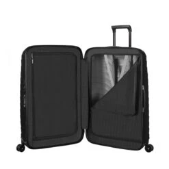 Over het interieur heeft Samsonite ook goed nagedacht. Aan de voorkant bevinden zich namelijk inpakriemen waarmee bagage op de plaats gehouden kan worden. De achterkant is af te sluiten doormiddel van een tussenschot waardoor bagage afgescheiden kan worden. Om bagage optimaal te beveiligen beschikt deze koffer over een verzonken TSA cijferslot, waardoor zorgeloos van en naar de VS gereisd kan worden.