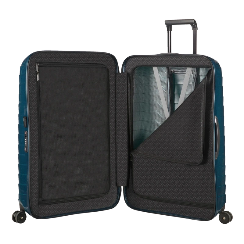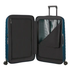 Over het interieur heeft Samsonite ook goed nagedacht. Aan de voorkant bevinden zich namelijk inpakriemen waarmee bagage op de plaats gehouden kan worden. De achterkant is af te sluiten doormiddel van een tussenschot waardoor bagage afgescheiden kan worden. Om bagage optimaal te beveiligen beschikt deze koffer over een verzonken TSA cijferslot, waardoor zorgeloos van en naar de VS gereisd kan worden.