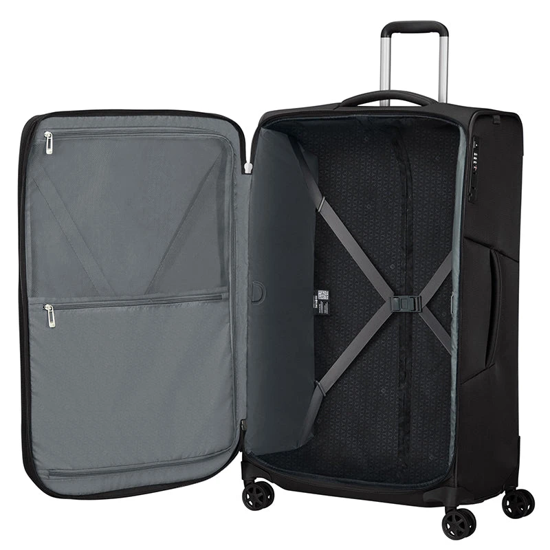 De trolley heeft twee voorvakken met een ritssluiting, beide zijn af te sluiten door middel van een kabel welke te bevestigen is in het slot van de koffer. Het hoofdvak heeft een tweewegritssluiting, deze is expandable waarmee de koffer een inhoud van 82 tot 92 liter heeft. Extra comfort gecreëerd door de verstelbare trekstang, twee handgrepen en de vier dubbele wielen