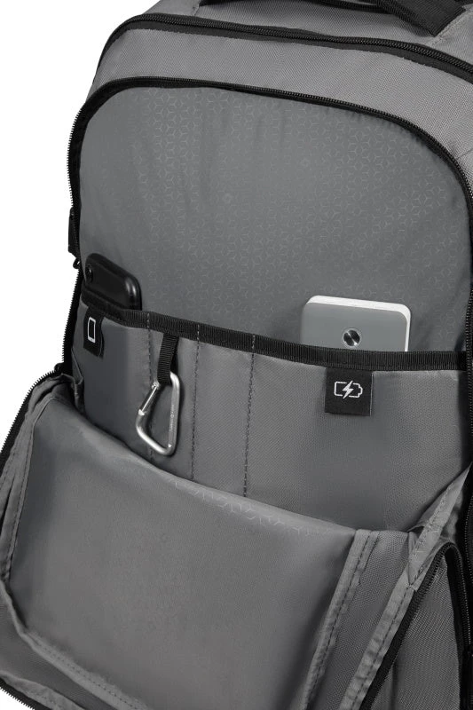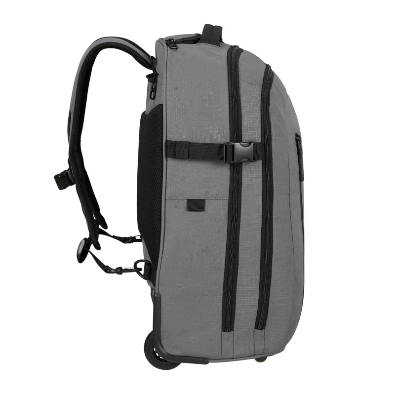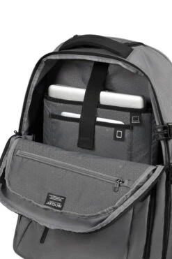 Deze laptop rugzak is een ruime en duurzame rugzak, die zowel op de rug of als trolley gebruikt kan worden en mag mee als handbagage met de meeste vliegmaatschappijen. De tas heeft voldoende capaciteit voor dagelijkse benodigdheden en biedt ruimte aan een 17,3″ laptop. Het hoofdcompartiment is geschikt voor A4 documenten, accessoires en bevat een breed insteekvak en kleinere insteekvakken. Op het voorvak, dat afsluitbaar is met een ritssluiting, bevindt zich een ritsvak. De tas is prettig te dragen dankzij de gewatteerde schouderbanden, de in hoogte verstelbare borstriem en het gewatteerde rugpaneel. Met behulp van de telescopische trekstang en de twee wielen kan de rugtas als trolley gebruikt worden. Middels de smart sleeve kan de rugtas gemakkelijk op het treksysteem van een trolley bevestigd worden.