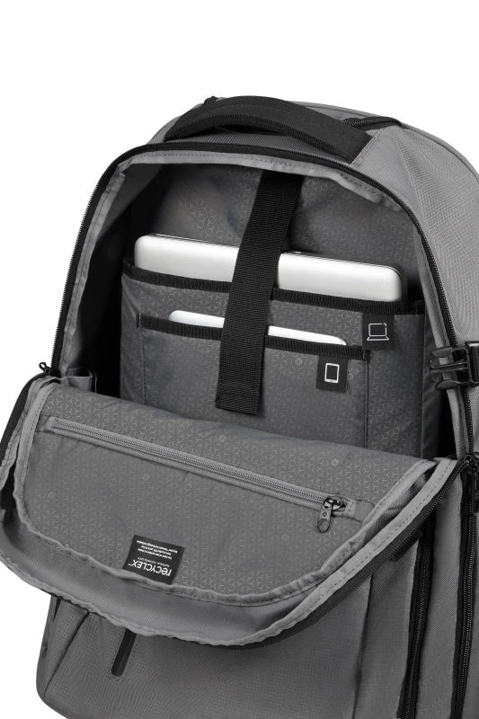 Zowel de buitenkant als de binnenkant van de producten uit de Roader collectie van Samsonite zijn gemaakt van 100% gerecycleerde petflessen, 4 tot 44 flessen (0,5l) per model. De waterafstotende coating maakt van deze collectie de perfecte keuze onder alle omstandigheden onderweg, naar je werk of in een stad. Daarnaast wordt er bij de modellen uit deze serie gebruik gemaakt van waterafstotende ritsen.Â