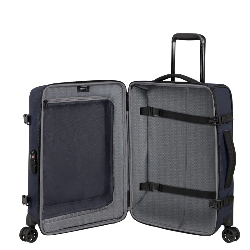 De Roader Wieltas 55 is de kleinste reistas met wielen uit de Roader serie en mag mee als handbagage met de meeste vliegmaatschappijen. De reistas heeft twee soepel lopende wielen, een verstelbare trekstang en twee handvatten waardoor de koffer gemakkelijk overal mee naar toe te nemen is. Aan de binnenzijde van de tas bevinden zich twee compartimenten die worden afgesloten met een rits en ook aan de voorzijde van de tas is een ritsvak te vinden. De spanbanden maken het mogelijk om bagage zo compact mogelijk te maken. Thuis kan de tas worden platgemaakt en zo worden opgeruimd. Dankzij het TSA-slot is de inhoud veilig opgeborgen.Â