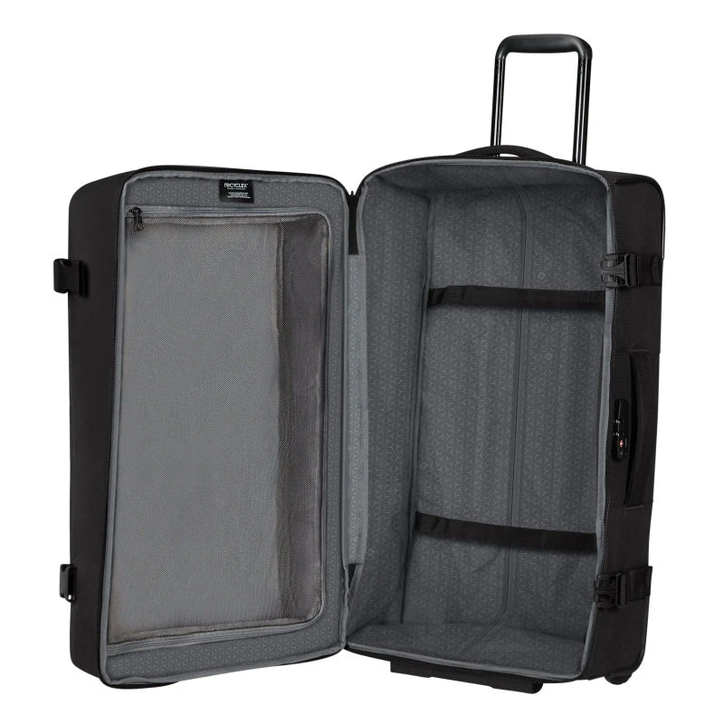De Roader Wieltas 68 is de middenmaat reistas uit de Roader serie. De reistas heeft twee soepel lopende wielen, een verstelbare trekstang en twee handvatten waardoor de koffer gemakkelijk overal mee naar toe te nemen is. Aan de binnenzijde van de tas bevinden zich twee compartimenten die worden afgesloten met een rits en ook aan de voorzijde van de tas is een ritsvak te vinden. De spanbanden maken het mogelijk om bagage zo compact mogelijk te maken. Thuis kan de tas worden platgemaakt en zo worden opgeruimd. Dankzij het TSA-slot is de inhoud veilig opgeborgen.Â